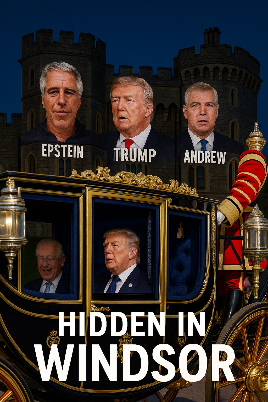 In an unprecedented and surreal twist, former President Donald Trump is reportedly being kept under tight wraps during his visit to the UK, specifically locked away in Windsor Castle. Social media buzz surrounding this incident has reached new heights as creative observers have found a workaround for this secrecy: live-streaming images of Trump alongside controversial figures Jeffrey Epstein and Prince Andrew onto the iconic castle itself.