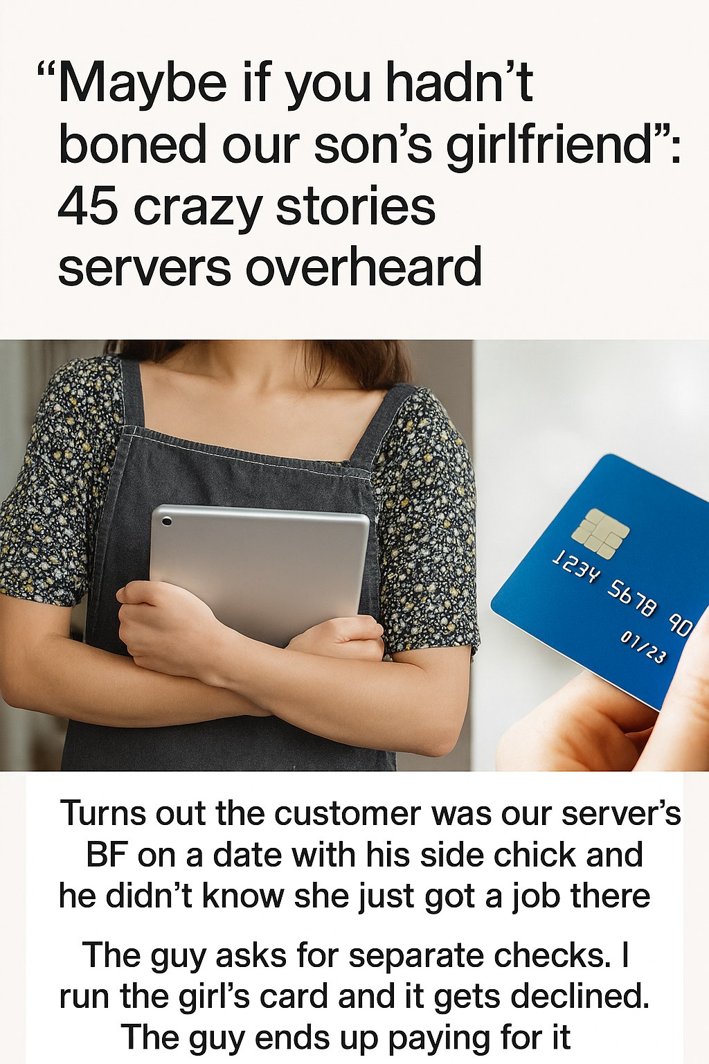 In the bustling world of waitstaff, every shift comes with its share of drama, laughter, and outrageous tales. Recently, a social media post featuring the phrase “Maybe if you hadn’t boned our son’s girlfriend” has gone viral, detailing absurd overheard conversations from servers across the country. This quirky glimpse into the lives of restaurant workers has sparked curiosity and engagement, resonating with many who understand the unfiltered realities of dining out.