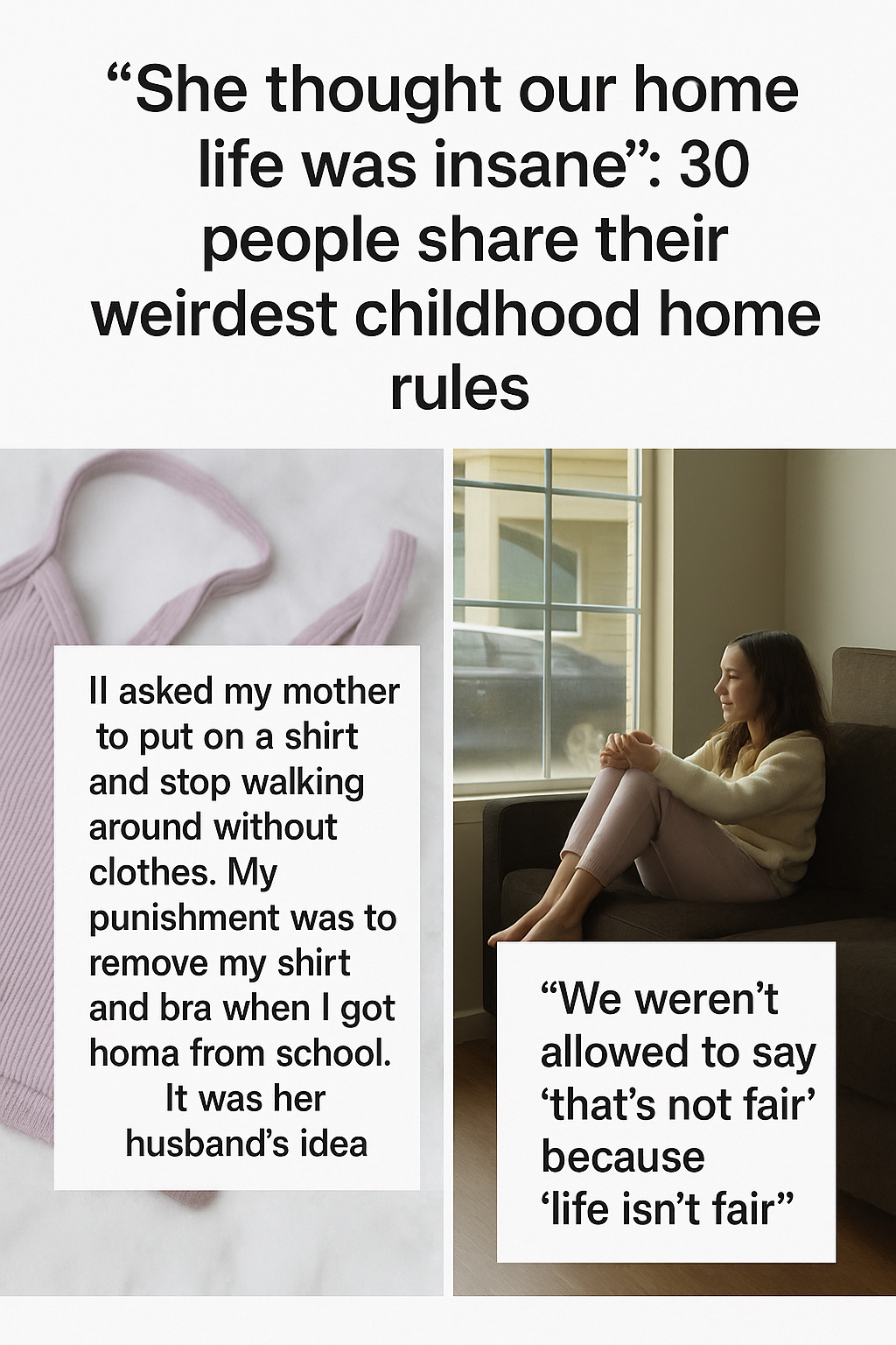 It all started when someone shared a humorous anecdote captioned, “She thought our home life was insane”, accompanied by a snapshot reflecting an awkward moment where a family member was notably asked to put on a shirt indoors. That glimpse into an eccentric home environment sparked a flood of responses from around the world, with more than 30 individuals detailing their own surreal or unexpected childhood rules.