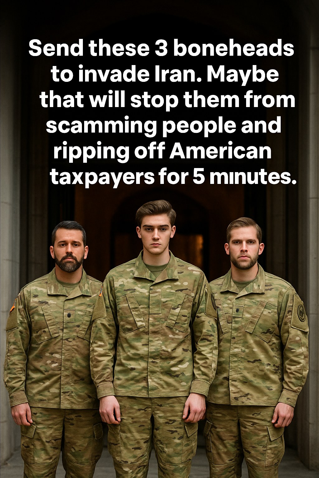 In recent days, a provocative image circulating across social media platforms has ignited a fiery debate among netizens regarding alleged fraudulent activity tied to American taxpayer funds. The image, emblazoned with the text, “Send these 3 boneheads to nyade Iran. Maybe that will stop them from scamming people and ripping off American taxpayers for 5 minutes.” has gone viral for its blunt condemnation and sarcastic tone.