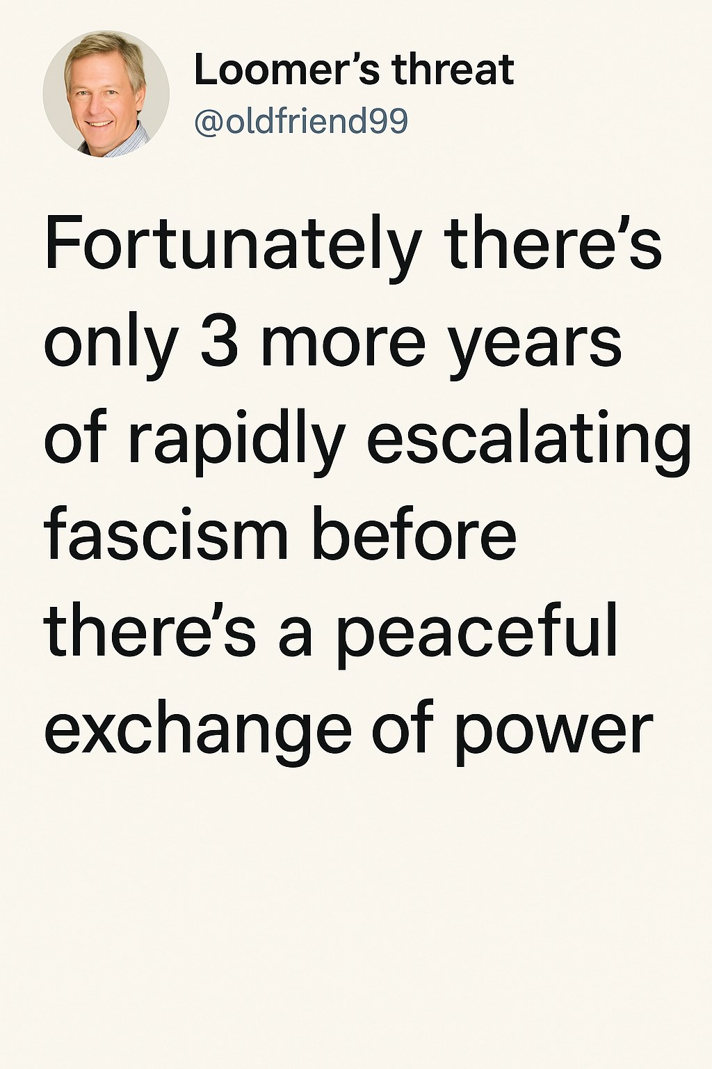 In a digital age where memes and images can convey the depth of public sentiment in an instant, a striking image has taken social media by storm, encapsulating the fears of a generation. The image features a single person standing under the stark text: “Loomer’s threat @ oldfriend99 Fortunately there’s only 3 more years of rapidly escalating fascism before there’s a peaceful exchange of power.” This stark message has resonated with countless users on platforms like Twitter, Instagram, and TikTok, igniting a conversation on the growing concerns surrounding political extremism and authoritarianism.
