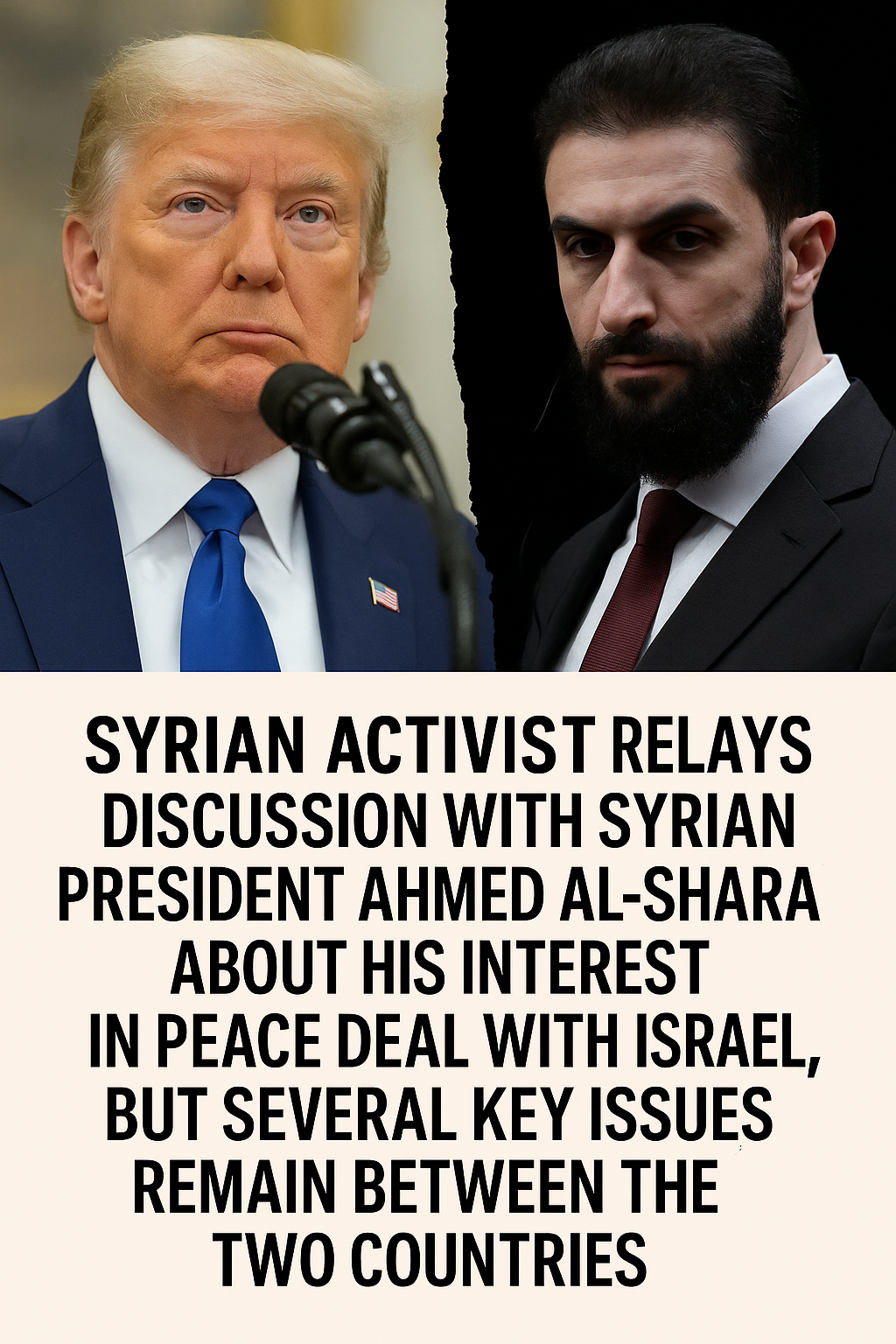 In summary, President Ahmed al-Sharaa’s expressed readiness to consider peace discussions with Israel, as conveyed by the activist, underscores a subtle but important shift in Syria’s approach. Yet, with the Golan Heights, refugee issues, and security concerns still unresolved, substantial challenges remain. The international community and regional actors will be watching closely to see if this tentative openness leads to a substantive peace process in the near future.