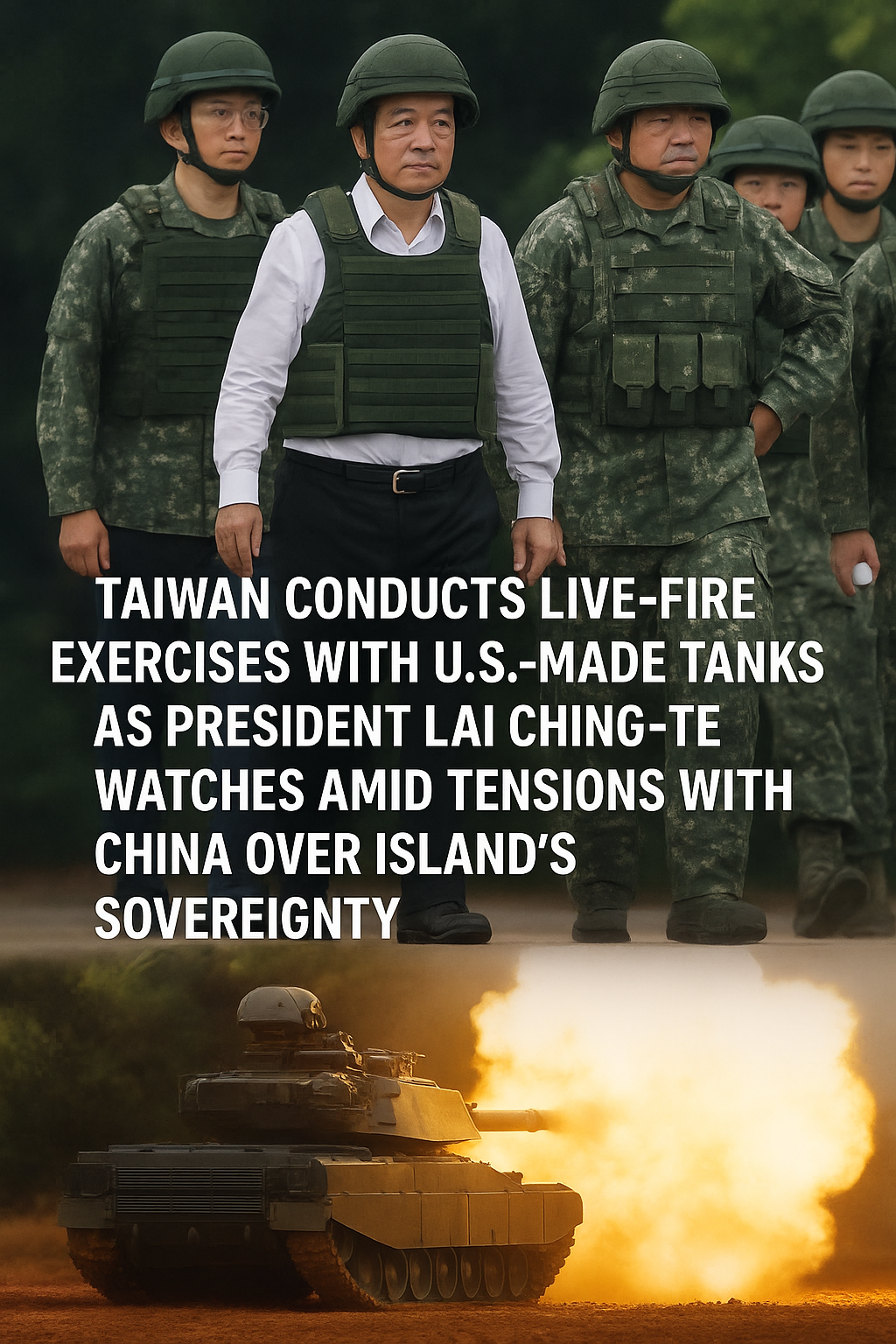 Taipei, April 2024 — In a clear demonstration of its readiness and resolve, Taiwan recently conducted live-fire military exercises featuring U.S.-made tanks, with President Lai Ching-te personally overseeing the maneuvers. The drills come at a time of increased tension with China, which claims sovereignty over the island and has escalated military pressure in the region.