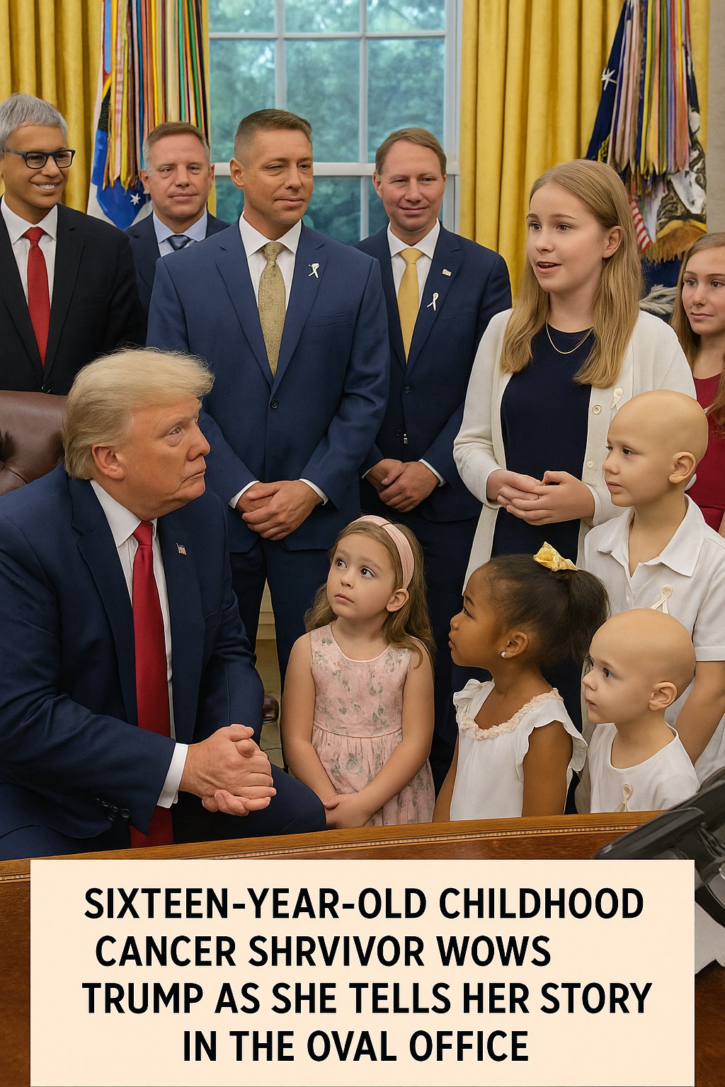 In a heartwarming moment that has captured the attention of millions, a sixteen-year-old childhood cancer survivor recently met with former President Donald Trump in the Oval Office, where her inspiring story left a lasting impression. The young girl, whose courage in battling cancer has rallied support across social media platforms, managed to impress Trump so profoundly that he inquired, “Where did you learn how to speak like that?”