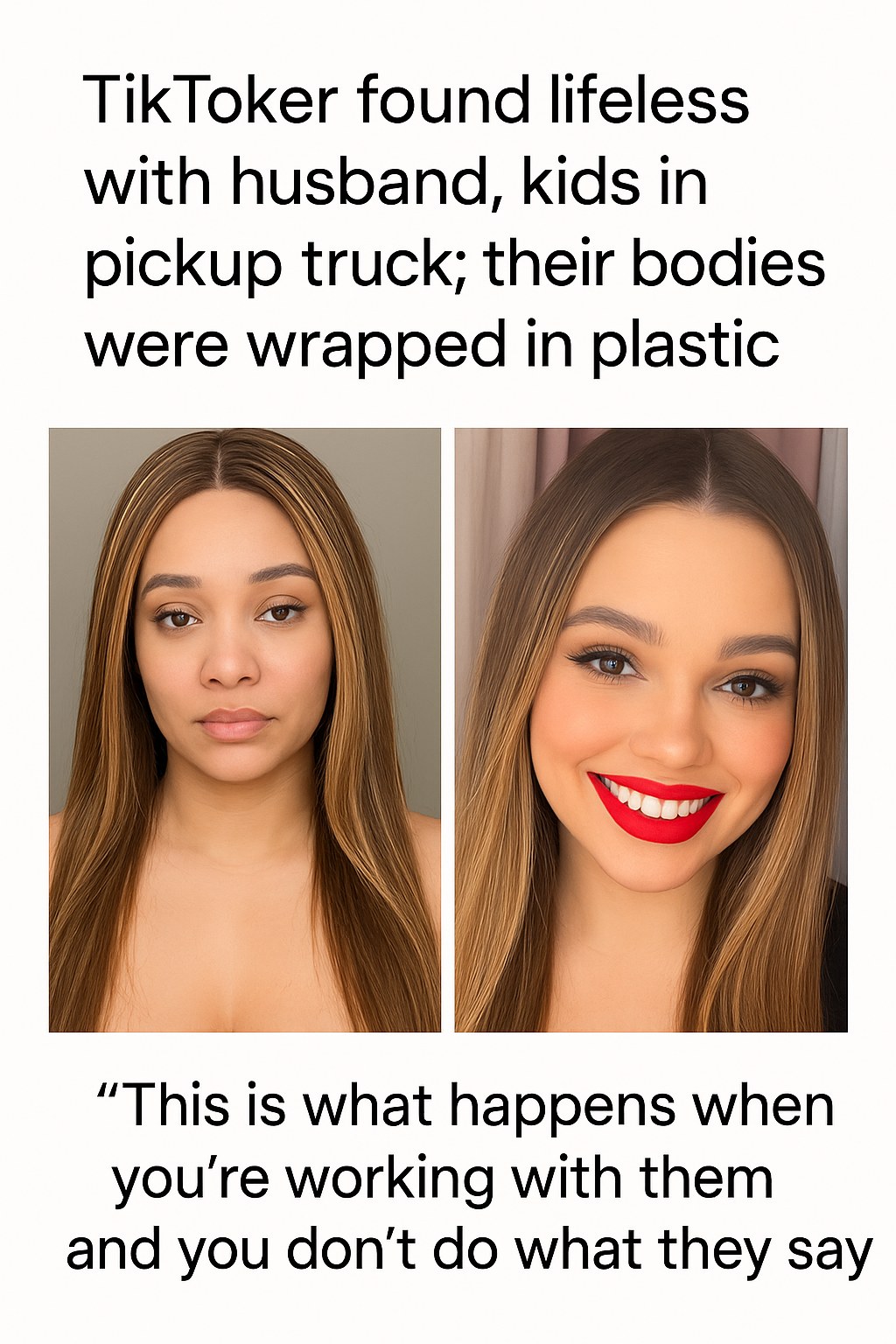 In a disturbing and tragic incident that has sent shockwaves through social media and local communities, a popular TikToker was found lifeless alongside her husband and their children inside a pickup truck. Authorities discovered the bodies wrapped in plastic, raising many questions about the circumstances leading to this heartbreaking event.