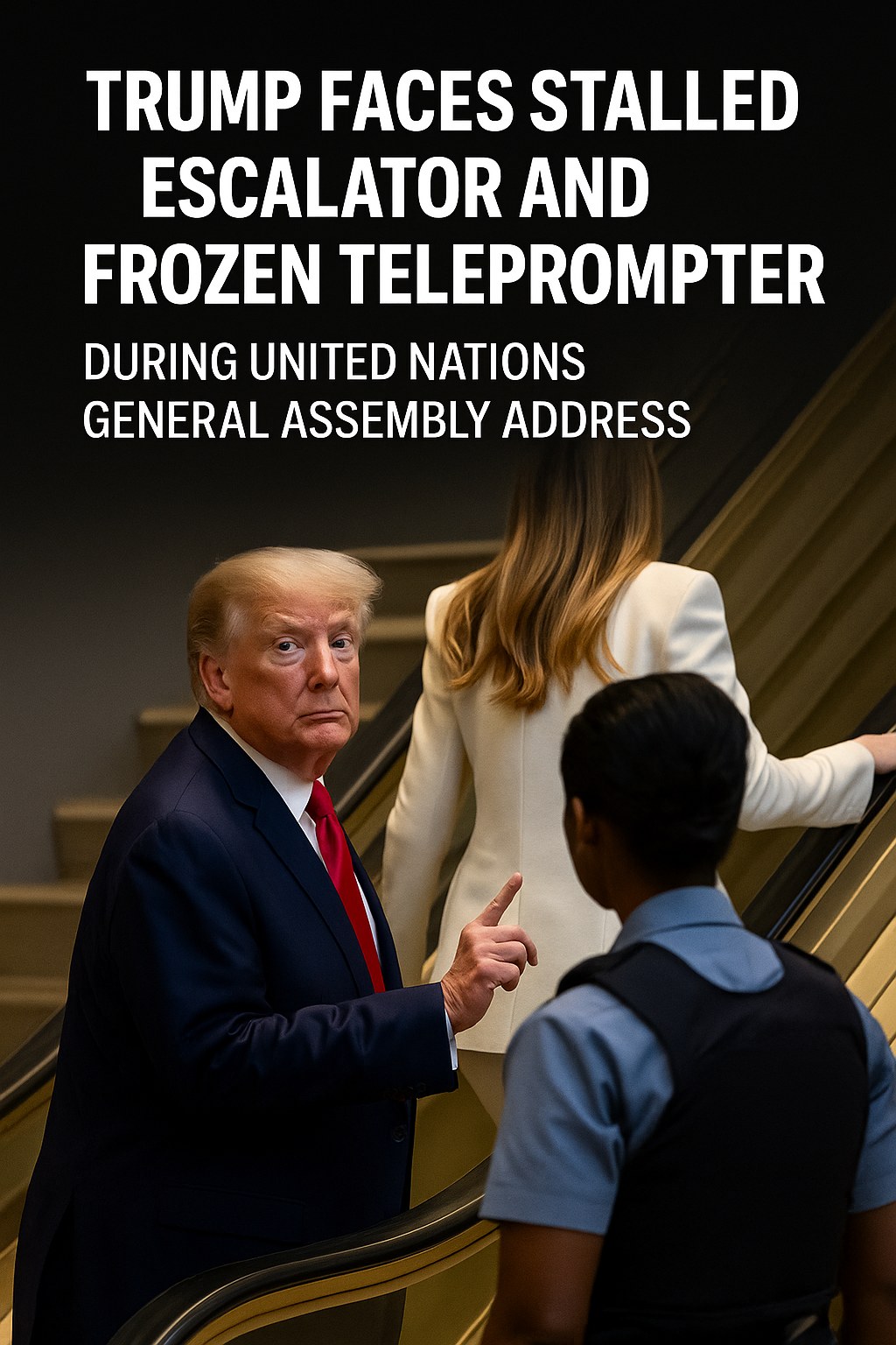 As Trump took the stage to address global leaders and diplomats, he was met with a stalled escalator that caused his entrance to the event to take longer than anticipated. Eyewitnesses reported the awkward moment as Trump awkwardly adjusted his posture, attempting to maintain his composure while the audience murmured in confusion.