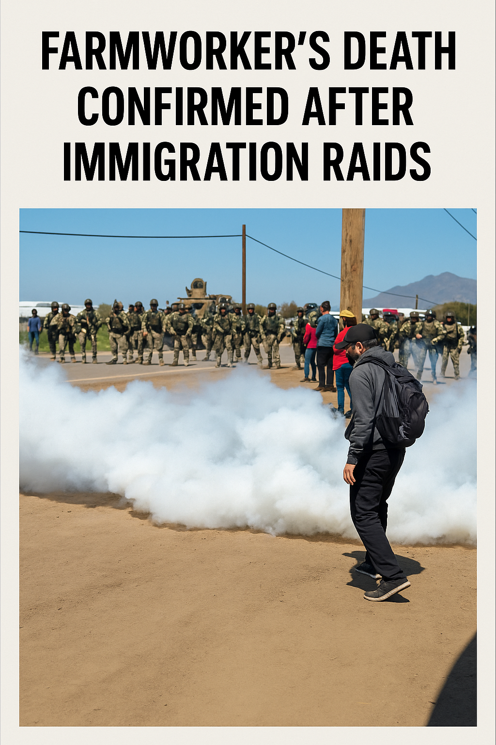 The union reported that one farmworker, whose identity has not been publicly released due to ongoing investigations and respect for the family’s privacy, died following the raid. The circumstances of the death are still under review, but initial information suggests the possibility of health complications exacerbated by stress and poor working conditions aggravated by the raid.