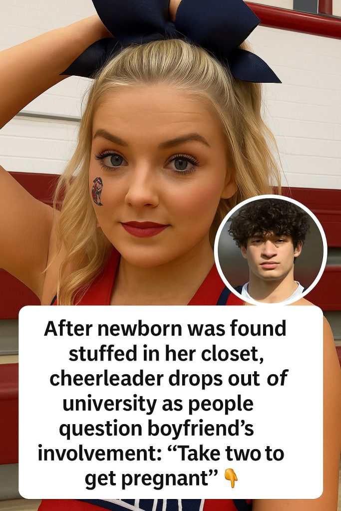 A shocking incident has captivated public attention after a newborn baby was found concealed in a closet belonging to a college cheerleader, leading to her abrupt withdrawal from university amid swirling suspicions regarding her boyfriend’s involvement.