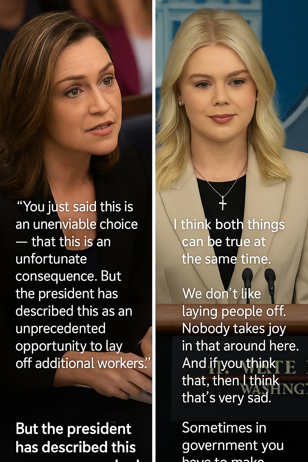 During the press conference, a reporter pressed Leavitt, pointing out the apparent contradiction in the president’s characterization. “You just said this is an unenviable choice — that this is an unfortunate consequence,” the reporter stated. “But the president has described this as an unprecedented opportunity to lay off additional workers.”