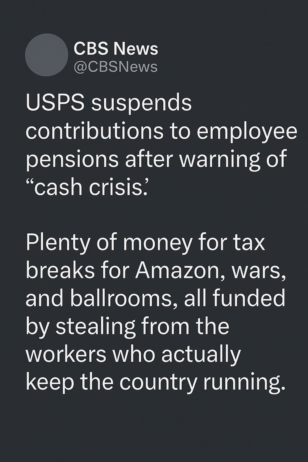 - USPS Suspends Contributions to Employee Pensions Amid Cash Crisis – CBS News