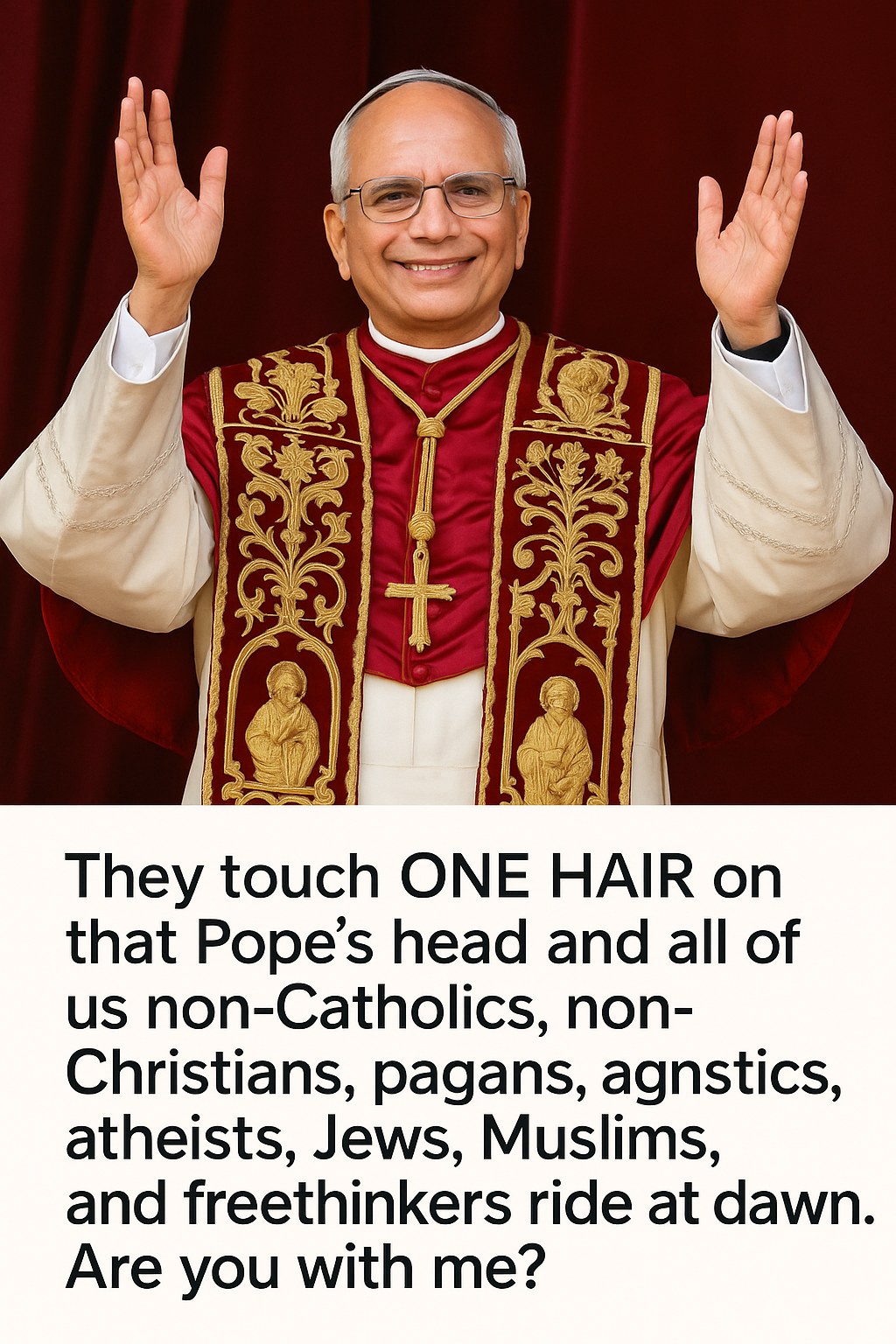 In an unexpected twist of social media humor and solidarity, a viral meme proclaiming, “They touch ONE HAIR on that Pope’s head and all of us non-Catholics, non-Christians, pagans, agnostics, atheists, Jews, Muslims, and freethinkers ride at dawn,” has swept across multiple platforms, sparking conversations far beyond the usual religious divides.