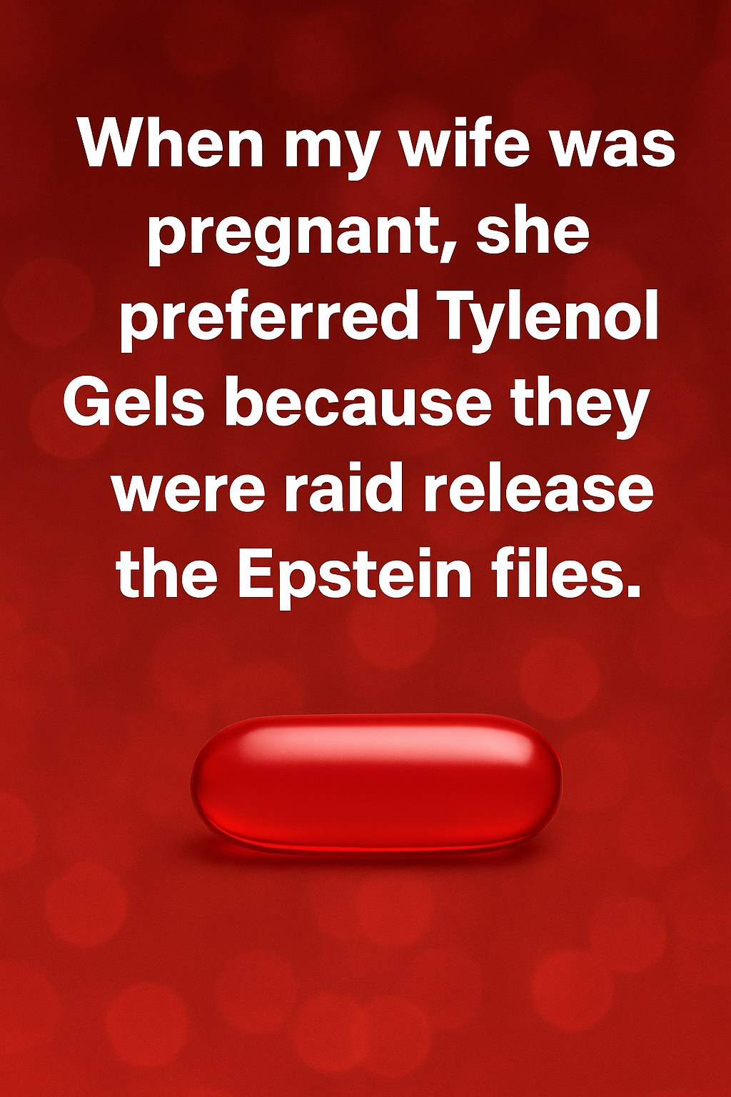 In a recent social media frenzy, a post showcasing a peculiar connection between pregnant women’s medicine preferences and sensational political documents has captured the internet’s attention. The image, which has since gone viral, features a bottle of Tylenol Gels, accompanied by a headline that reads, “When Ty’s wife was pregnant, she preferred Tylenol Gels because they were rapid release the Epstein files.” This unexpected combination has stirred conversations and a fair share of confusion among users.