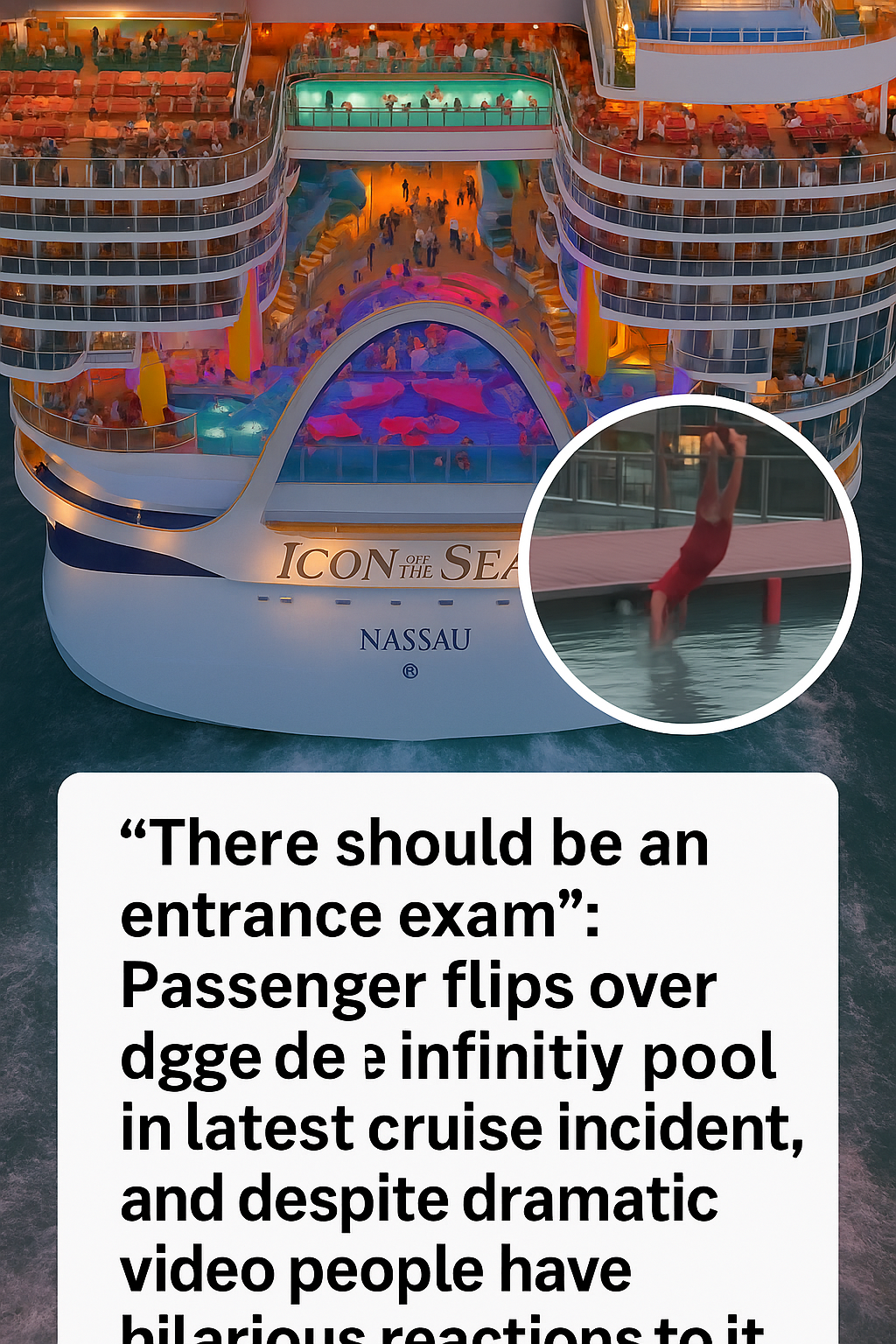 In a startling yet oddly amusing incident, a passenger aboard a cruise ship near Nassau recently captured dramatic footage of themselves flipping over the edge of an infinity pool. The video, which has rapidly gained traction on social media, has sparked a wave of humorous and candid reactions from viewers, many suggesting, “There should be an entrance exam” before guests are allowed to enjoy such precarious luxury amenities.
