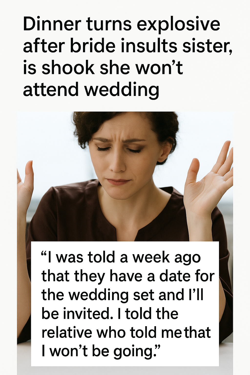 A family dinner meant to celebrate unity and upcoming nuptials turned into a scene of tension and heartbreak when a bride’s harsh words directed at her sister led to an explosive confrontation. The fallout from the argument has resulted in the sister refusing to attend the wedding — a stunning development that has left the entire family shaken ahead of the big day.