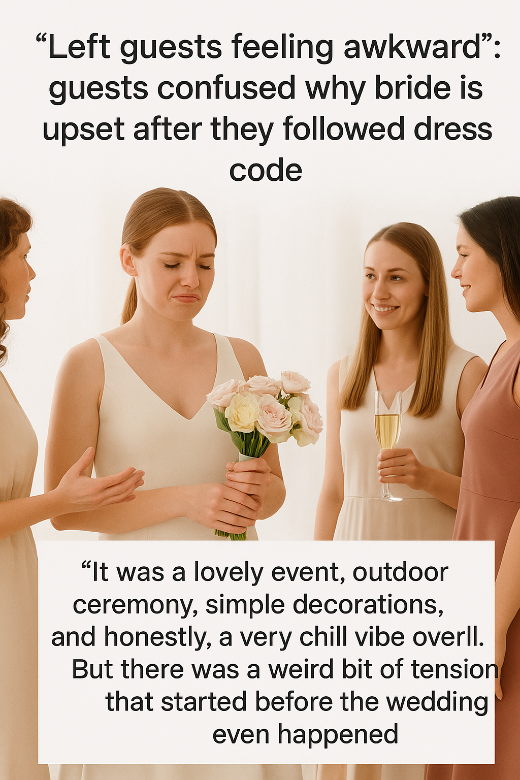 A recent wedding ceremony meant to be a joyous outdoor celebration took an awkward turn when guests adhered strictly to the prescribed dress code—only to face the bride’s unexpected displeasure. The incident, which has since circulated widely on social media, has left attendees puzzled and sparked a conversation about wedding etiquette and expectations.