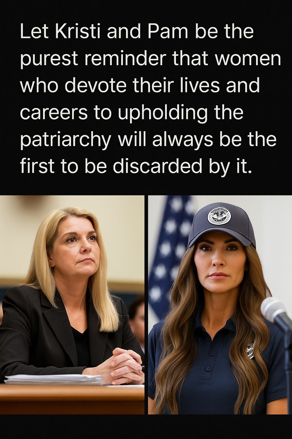 The post reads: “Let Kristi and Pam Pam be the purest reminder that women who devote their lives and careers to upholding the patriarchy will always be the first to b…” — a truncated viral catchphrase expanding across various platforms to express frustration and critique toward women perceived as defenders of patriarchal norms.
