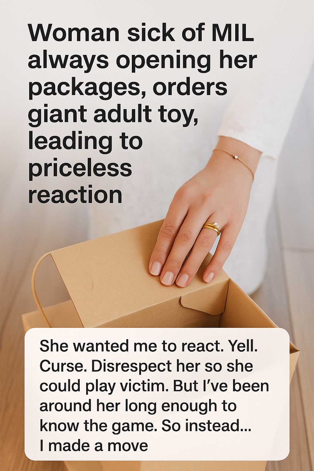 The moment the oversized package was delivered, the mother-in-law, unable to resist inspecting it once again, discovered the unexpected contents. The daughter-in-law recalled her mother-in-law’s reaction as “priceless” and filled with shock, surprise, and a hint of embarrassment. “She wanted me to react—yell, curse, disrespect,” the woman wrote, “but instead, I just laughed and made it clear, in a very non-verbal way, that I knew what she was doing.”