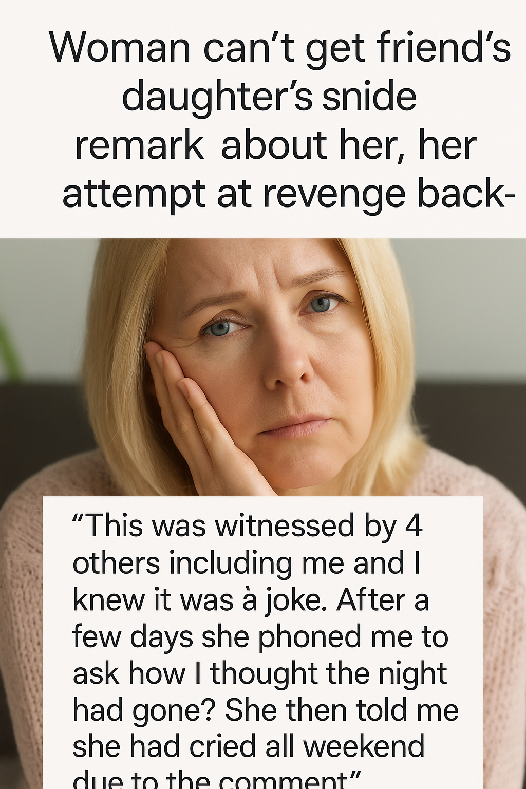 What started as a minor social slight quickly spiraled into an uncomfortable spectacle when a woman attempted to get back at her friend’s daughter for a snide comment — only to have her well-intended revenge backfire in front of witnesses.