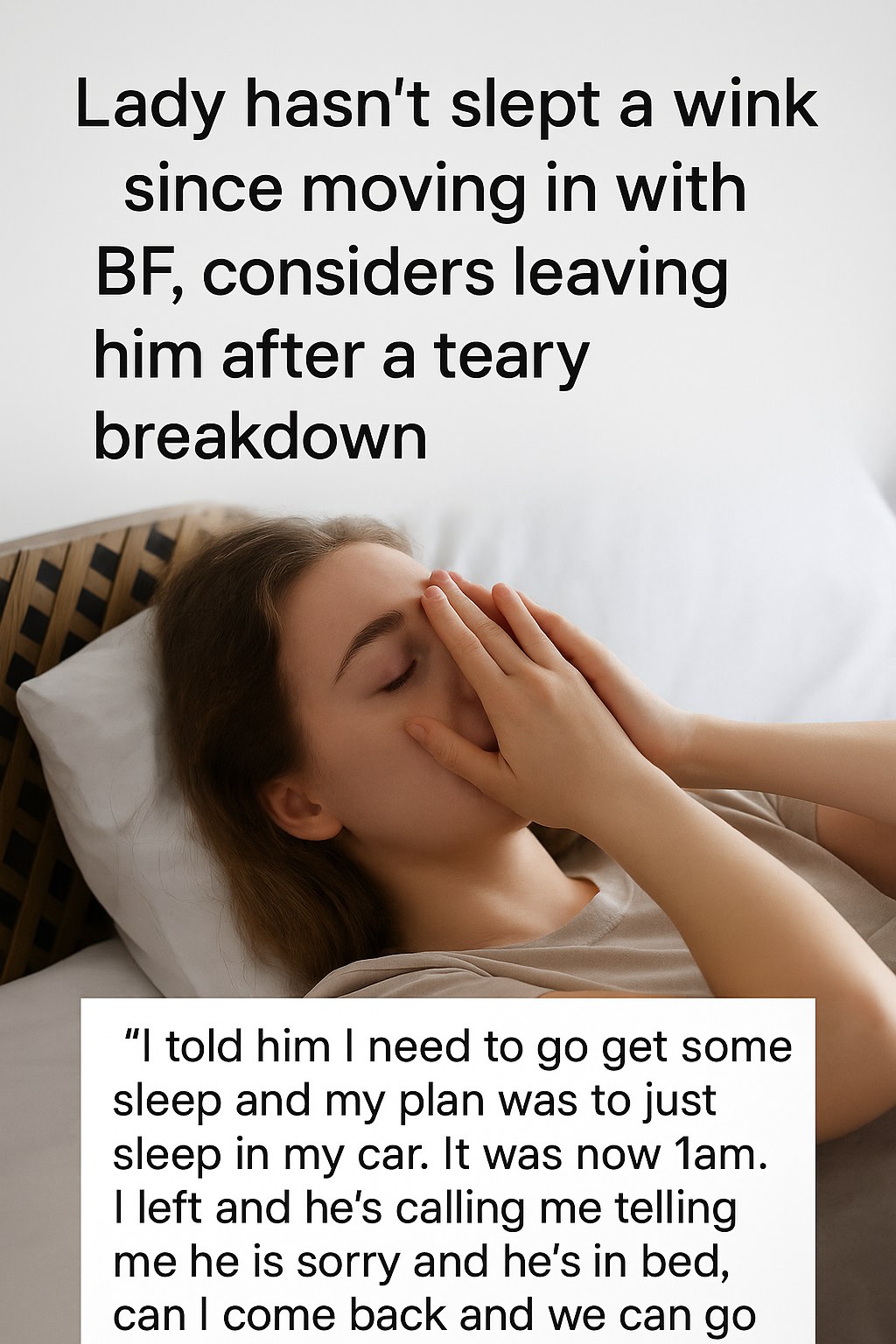 For many, moving in with a significant other marks an exciting new chapter. However, for one woman, the experience turned into a deeply challenging ordeal as she found herself unable to sleep a single night since relocating with her boyfriend. Her ongoing sleep deprivation has led to intense emotional distress, culminating in a tearful breakdown and serious consideration of ending the relationship.