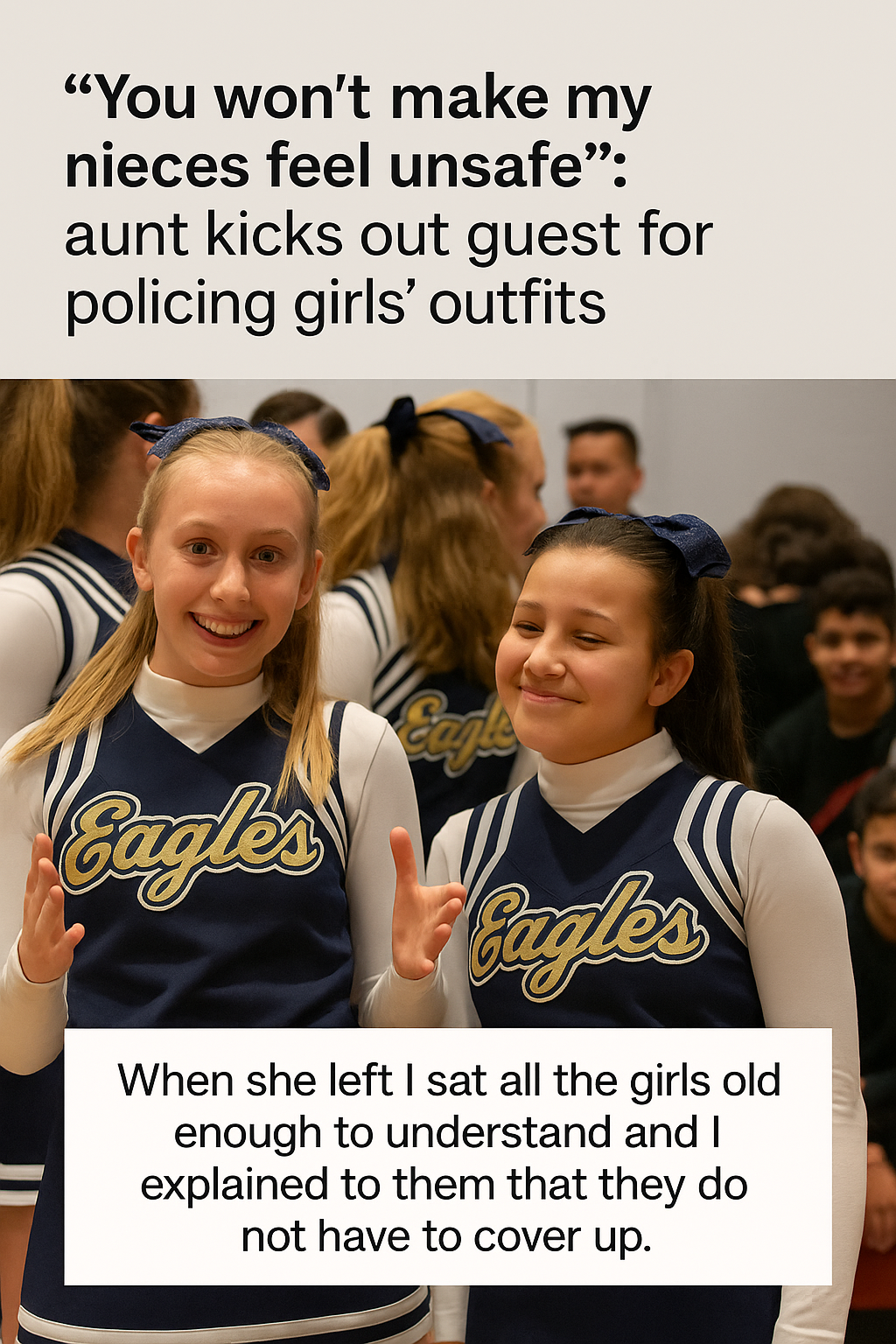 According to those at the event, the aunt stepped in decisively, telling the guest, “You won’t make my nieces feel unsafe.” She made it clear that monitoring or policing how girls choose to dress was unacceptable behavior in her presence, and she subsequently asked the guest to leave.